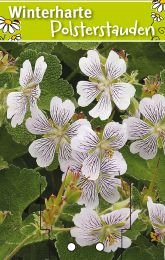 Samtweiche, graugrüne Blättchen und dekorative weiße Blüten, mit violetten Adern durchzogenen. Auf trockenen Böden am Gehölzrand oder als Beeteinfassung ideal.