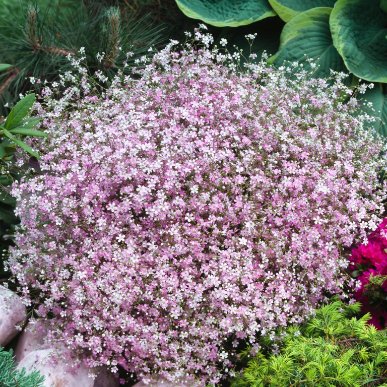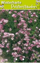 Die flachen, raschwachsenden Polster wirken besonders schön in Verbindung mit Stufen und Platten und in Fugen. Von 5 bis 7 hüllen sie sich in hellrosa Blütenwolken.
