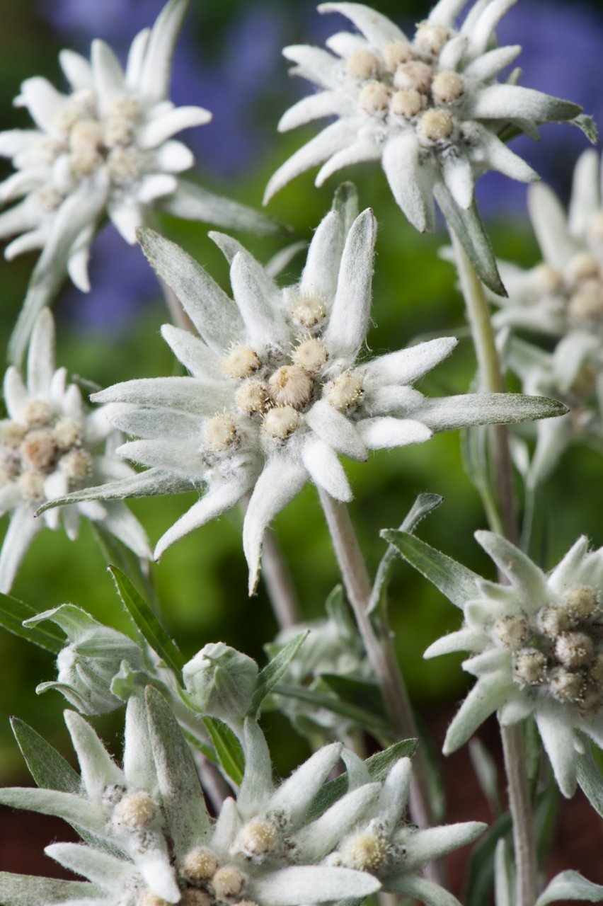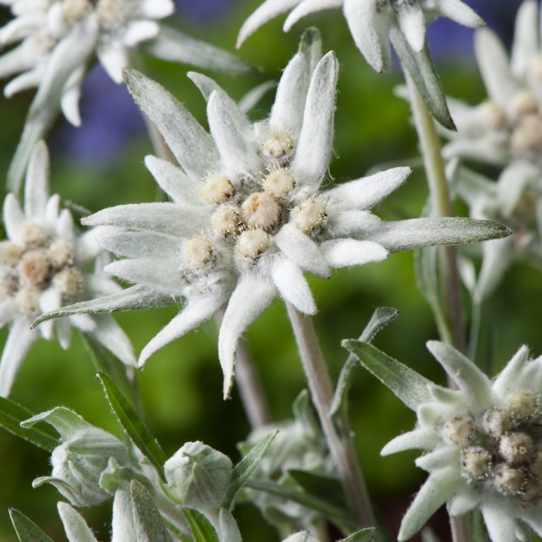 Schneeweiße, dichtfilzige Blütensterne erscheinen in voller Sonne in großer Zahl. Sehr genügsam. Schön zu Polsterstauden wie Blaukissen, Steinbrech oder Teppichphlox.
