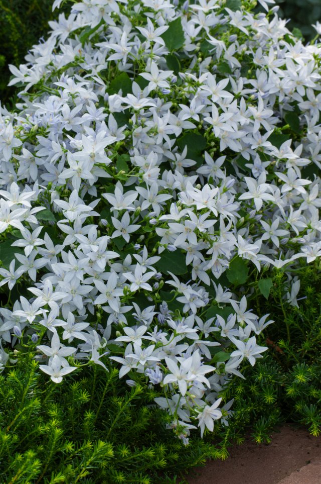 Campanula poscharskyana 'Schneeranke' Hängepolster-Glockenblume